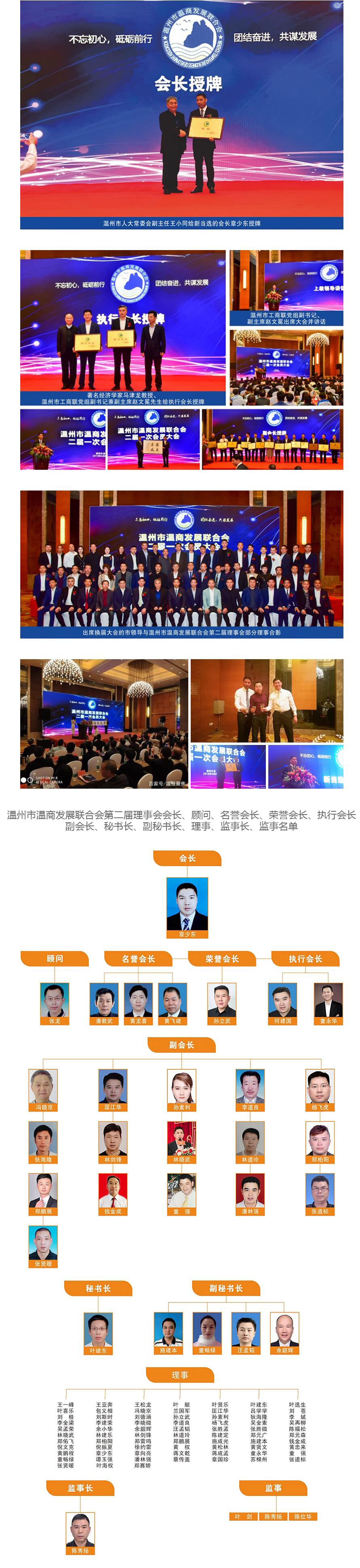 2019年4月6日,溫州市溫商發(fā)展聯(lián)合會成功換屆,來自**各地的知名溫商、溫商商會**和企業(yè)家300多人參加了會議并成為二界會員。黑龍江省大慶市政協(xié)委員、中泰科技有限公司董事長章少東先生當(dāng)選新任會長并發(fā)表講話。講話中提到:在經(jīng)濟(jì)轉(zhuǎn)型、社會轉(zhuǎn)型和政府轉(zhuǎn)型的關(guān)鍵時期,遵照“自我管理、自我服務(wù)、自我協(xié)調(diào)、自我發(fā)展”的方針,溝通多方關(guān)系,加強(qiáng)溫商聯(lián)絡(luò),聯(lián)合溫商力量,整合各界資源,推動溫州企業(yè)創(chuàng)新發(fā)展,做大做強(qiáng),打造溫商**和溫商名片,促進(jìn)溫州總部經(jīng)濟(jì)持續(xù)、穩(wěn)定、健康、高速的發(fā)展。章少東董事長在講話中還提到通過規(guī)范運作,提高組織、指導(dǎo)、協(xié)調(diào)、服務(wù)水平,在政府和企業(yè)之間發(fā)揮橋梁紐帶作用,對會員單位強(qiáng)化協(xié)調(diào)服務(wù)職能,做出積極貢獻(xiàn)!