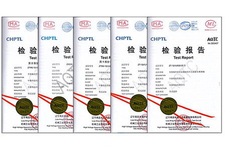 2020年05月24日,我司先后經(jīng)過**電器產(chǎn)品質(zhì)量監(jiān)督檢驗中心、遼寧高壓電器產(chǎn)品質(zhì)量檢測有限公司等機構(gòu)的檢驗,我司產(chǎn)品符合質(zhì)量要求,順利取得高壓產(chǎn)品檢驗報告